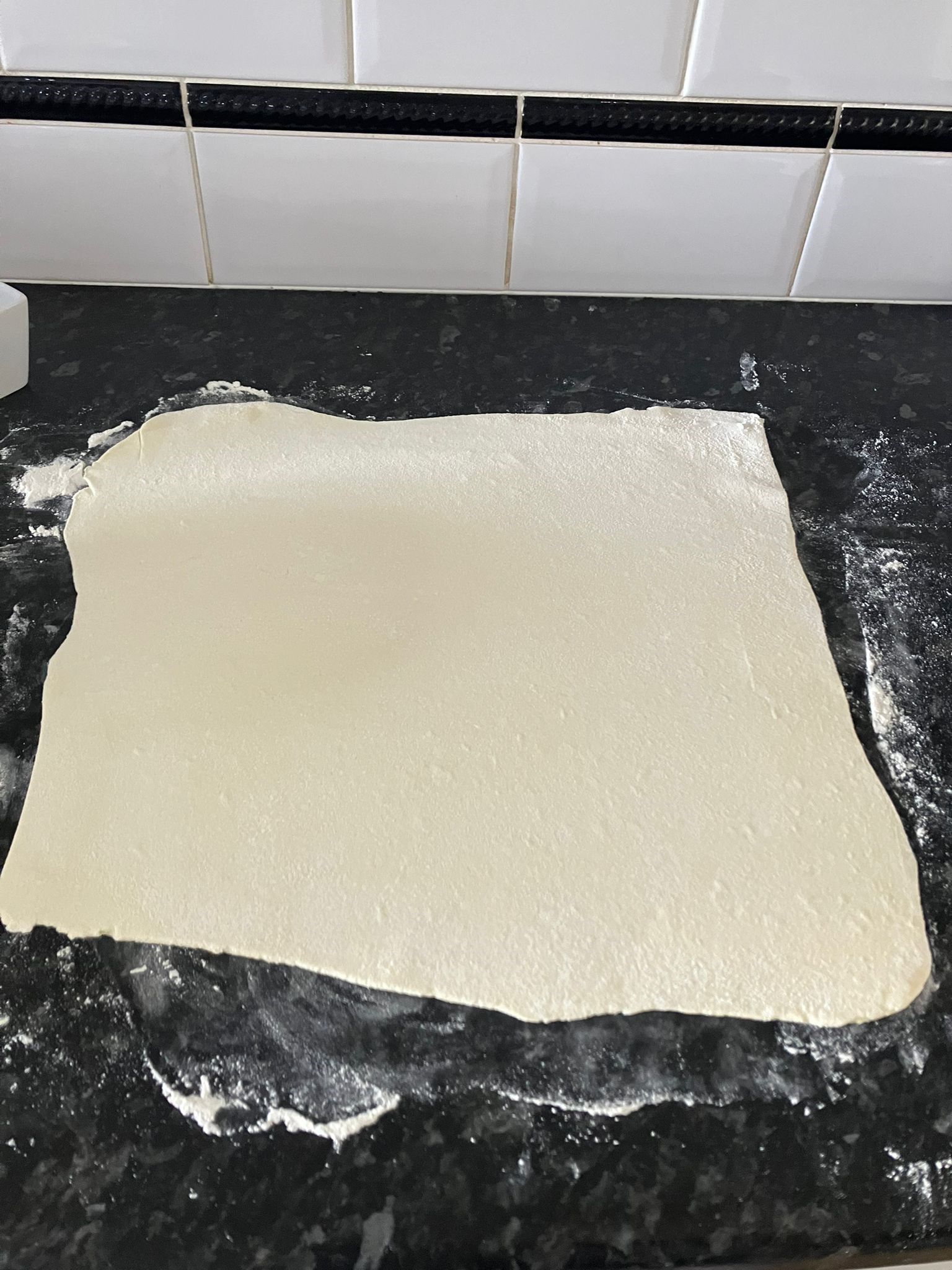 - Roll out the puff pastry to a rectangle approximately 30cm x 20cms. If using a sheet this will already be done for you.