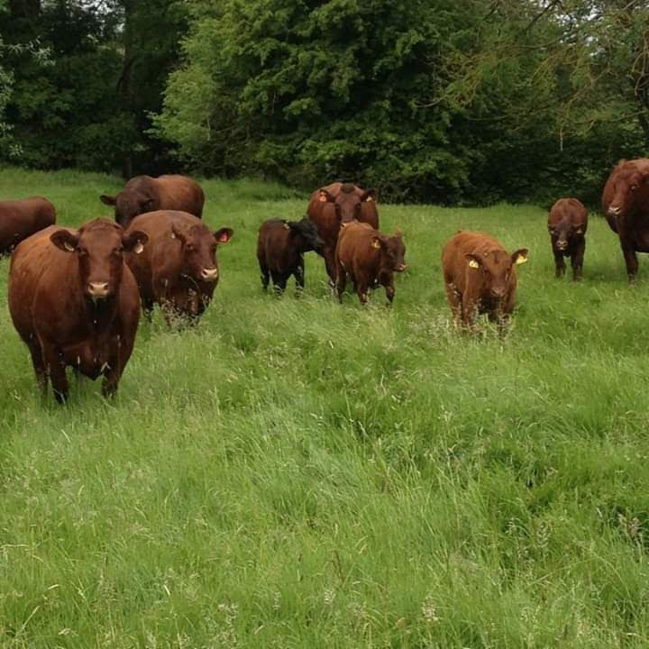 At Deersbrook you will find a native Sussex herd of cattle which are 100% pasture fed for their whole lives; There are pasture meadows which the cattle graze.